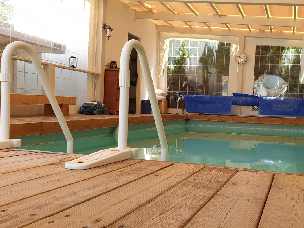 בריכה טיפולית קסומה, מחוממת ומקורה, בין פרחים וצמחיה ירוקה, במושב יציץ. הטיפול כולו לנפש ומצוין גם בבעיות של כאב, דכאון, חרדות..